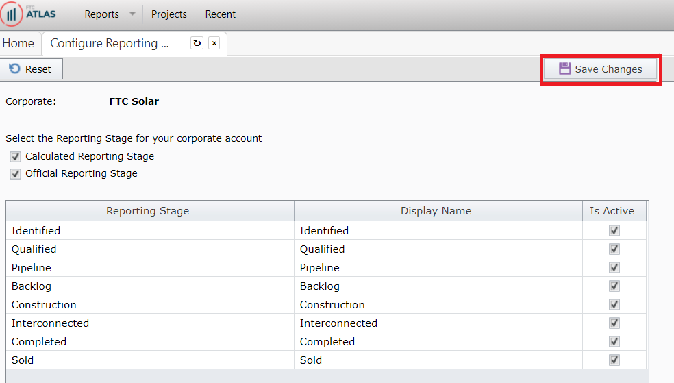 To save your changes, click on the Save Changes button on the top right corner. In case you do not want to make changes to the reporting stages, you can just skip this screen.