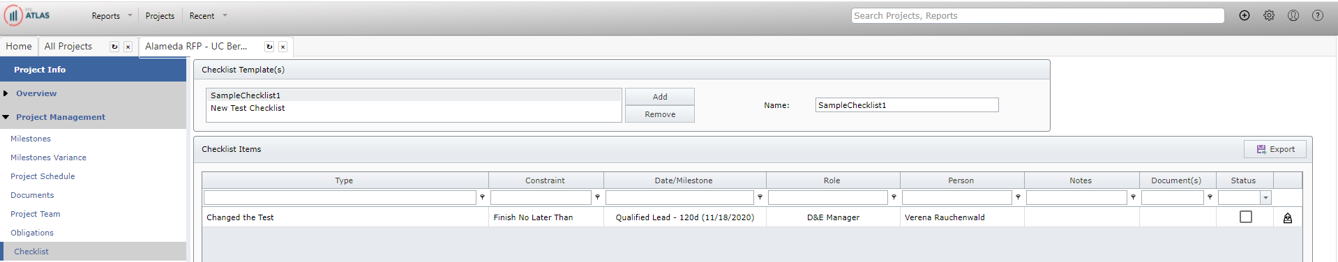 This help article describes the Checklist screen of the Project Management Project Info Tab.