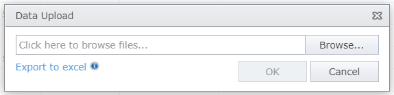 You can also upload COGS data via an Excel template. Click on Data Upload and a popup will appear. Export the data to Excel, and then fill in all the numbers (amount or per W). Once the file is ready, click on Browse.... and select the file that you wish to upload.